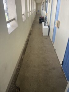 今回はマンションの玄関通路なのでお客様がつまずかないよう、たわみなく綺麗に貼っていきます。