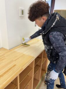 塗ることにより、木部の寿命を延ばすのはもちろん、見た目や触った時のツルツル感。