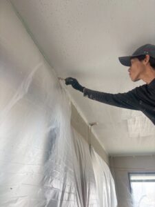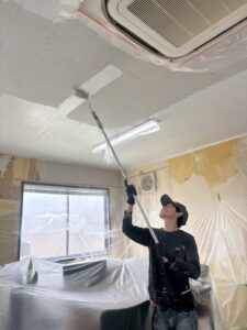 本日は内部の天井塗り替え塗装工事を行ってきました。
