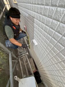 そして中塗り、上塗りと仕上げの色を2回塗り重ねていきます。